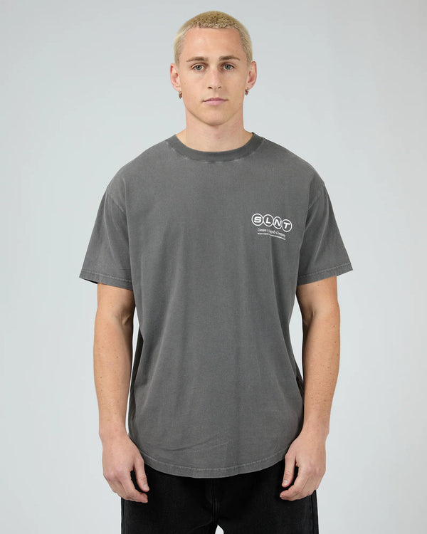 Introducing the Portal Scoop Tee, a comfortable, relaxed-fit tee featuring a curved hemline for a modern silhouette. Styled with a ribbed crew neckline for added structure. Showcasing Silent Theory branding on the front and a striking graphic detail along the spine for a unique edge.
